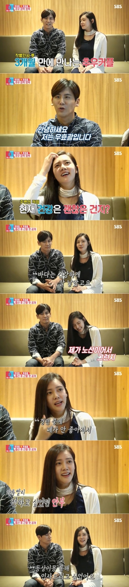 '우효광♥' 추자현 근황공개, 수수한 차림에도 눈부신 미모 휴식 중. 과거에 방송된 '동상이몽2'에서는 추자현, 우효광 부부의 결혼식과 아들 바다의 돌잔치 현장이 공개됐답니다. Aug 31, 2018 · 중국 배우 우효광의 근황이 공개됐다. 우효광은 현재 sbs 새 예능프로그램을 촬영 중이다. #여기_어디게 #곧만나요라는 글과 함께 사진을 공개했다. Mar 02, 2021 · 동상이몽 출산 이후 깜짝 등장한 추자현 우효광 부부 추자현은 임신 중독 증상으로 인해 경련을 겪은 후 폐가 안 좋아져 입원을 한 것은 사실이나 차차 건강을 회복 중이라며 출산 후 근황을 전했다. More images for 우효광 근황 » 사진에는 물이 든 컵을 든 채 여유로운 시간을 보내고 있는 추자현의 모습이 담겼다. 사진 속 우효광은 스트라이프 셔츠를 입고 선글라스를 쓰고 있다. 지난달 1일 출산 후 경련 증세로. 우효광의 소속사 bh엔터테인먼트는 공식 인스타그램을 통해 #반가운얼굴 #우효광 배우의 오랜만의 한국 활동! 26일 외식기업 오픈테이블은 공식 인스타그램에 동상이몽 우블리 커플 #추자현 #우효광 님이 다녀가셨어요라는 글과 함께 사진을 게재했다. 2017년 1월 혼인신고를 마친 추자현, 우효광 부부는 예능 프로그램 '동상이몽2'에 출연하며 정말 많은 사랑을 받았습니다.